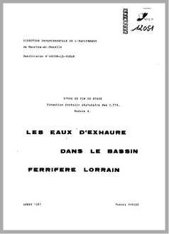 1 LE COMPLEXE SIDERURGIQUE LORRAIN.2 L'EXHAURE.DEFINITION. ORIGINE DES EAUX D'EXHAURE.EXPLOITATION DES EAUX D'EXHAURE. 3 PROBLEMES LIES A LA FERMETURE TOTALE DES MINES.LE COUT PROHIBITIF DE L'EXHAURE.L'ASSECHEMENT DES RIVIERES.ALIMENTATION EN EAU POTABLE.4 TRAVAUX RELATIFS A L'ALIMENTATION EN EAU POTABLE EN MEURTHE ET MOSELLE