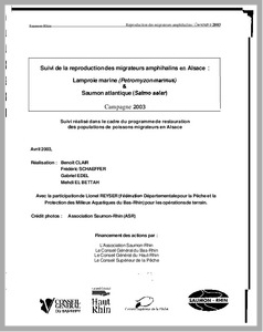 H 1 Suivi de la reproduction des migrateurs amphihalins en Alsace : lamproie marine, Peytromyzon marinus, et saumon atlantique Salmo salar. Campagne 2003