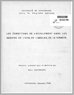 H 1 Les conditions de l'écoulement dans les bassins de l'Ehn, de l'Andlau, de la Kirneck.