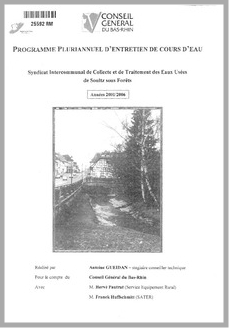 H 1 Programme pluriannuel d'entretien de cours d'eau. Syndicat intercommunal de collecte et des traitement des eaux usées de Soultz sous Forêts (Bas Rhin). Année 2001-2006.