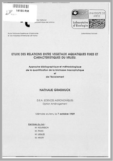 H 1 ETUDE DES RELATIONS ENTRE VEGETAUX AQUATIQUES FIXES ET CARACTERISTIQUES DU MILIEU. APPROCHE BIBLIOGRAPHIQUE ET METHODOLOGIQUE DE LA QUANTIFICATION DE LA BIOMASSE MACROPHYTIQUE ET DE L'ECLAIREMENT