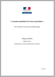Le député du Gers Philippe Martin propose notamment dans son rapport une nouvelle vision et un meilleur partage de l'eau en agriculture.