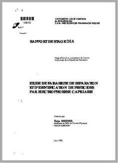 H 1 ETUDE DE FAISABILITE DE SEPARATION ET D'IDENTIFICATION DE PESTICIDES PAR ELECTROPHORESE CAPILLAIRE