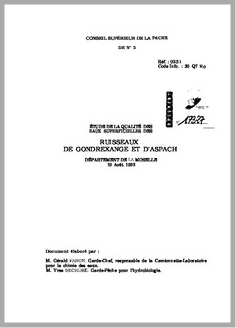 H 1 ETUDE DE LA QUALITE DES EAUX SUPERFICIELLES DES RUISSEAUX DE GONDREXANGE ET D'ASPACH.MOSELLE