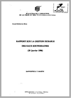 MONSIEUR MARTIN A MENE CETTE MISSION DE REFLEXION AFIN DE SOULEVER LE PROBLEME DE LA SAUVEGARDE DE LA RESSOURCE EN EAU SOUTERRAINE ET DES MOYENS A METTRE EN OEUVRE