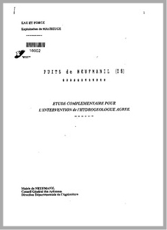 H 1 PUITS DE NEUFMANIL.ARDENNES.ETUDE COMPLEMENTAIRE POUR L'INTERVENTION DE L'HYDROGEOLOGUE AGREE