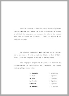 H 1 REVALORISATION DU CATALOGUE DES DEBITS D'ETIAGE DE LA MEUSE. CAMPAGNE DE MESURE 1991. AFFLUENTS DE LA MEUSE ENTRE LE MOUZON ET LA MEHOLLE