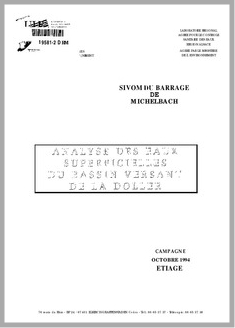 H 1 ANALYSE DES EAUX SUPERFICIELLES DU BASSIN VERSANT DE LA DOLLER. CAMPAGNE DE OCTOBRE 1994 ETIAGE.
