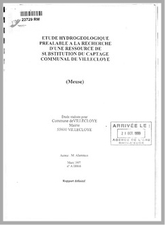 H 1 ETUDE HYDROGEOLOGIQUE PREALABLE A LA RECHERCHE D'UNE RESSOURCE DE SUBSTITUTION DU CAPTAGE COMMUNAL DE VILLECLOYE. MEUSE
