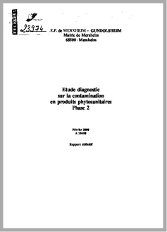 H 1 SIPEP DE MERXHEIM GUNDOLSHEIM (HAUT RHIN). ETUDE DIAGNOSTIC SUR LA CONTAMINATION EN PRODUITS PHYTOSANITAIRES. PHASE 2. RAPPORT DEFINITIF.