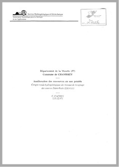 H 1 Commune de Chambrey (Moselle). Amélioration des ressources en eau potable. Compte-rendu hydrogéologique des travaux de recaptage des sources Saint Roch (230.4.11)