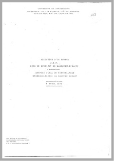 H 1 Exécution d'un forage AEP pour le syndicat de Habsheim Rixheim. Rapport final de surveillance hydrogéologique du nouveau forage (Haut Rhin).