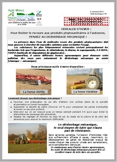 H 1 CEREALES D’HIVER : Pour limiter le recours aux produits phytosanitaires à l’automne, PENSEZ AU DESHERBAGE MECANIQUE ! 5 octobre 2012