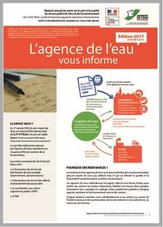 Conformément aux dispositions de l’article 161 de la loi 2010-788 du 12 juillet 2010 portant engagement national pour l’environnement (désormais art. L2224-5 du Code général des collectivités territoriales), l'Agence a établi sa note d'information à destination des maires portant sur les redevances figurant sur la facture d'eau des abonnés et sur la réalisation de son programme pluriannuel d'intervention...
