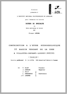 H 1 CONTRIBUTION A L'ETUDE HYDROGELOGIQUE DU BASSIN VERSANT DE LA CHEE A VILLOTTE DEVANT LOUPPY (MEUSE). THESE