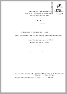 H 1 INTERACTIONS PESTICIDES,SOL EAU.LEURS CONSEQUENCES SUR LES RISQUES DE CONTAMINATION DES EAUX.