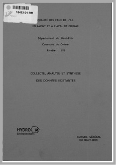 H 1 Qualité des eaux de l'Ill en amont et à l'aval de Colmar. Collecte et analyse et synthèse des données existantes.