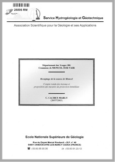 H 1 Commune de Moncel-sur-Vair (Vosges). Recaptage de la source de Moncel. Compte-rendu des travaux et proposition des mesures de protection immédiate