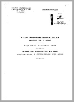 H 1 ETUDE HYDROGEOLOGIQUE DE LA VALLEE DE L'AIRE. SEPTEMBRE DECEMBRE 1988. NOUVELLE RESSOURCE EN EAU SOUTERRAINE A COURCELLES SUR AIRE (MEUSE).