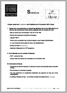 SUITES DE LA COMMUNICATION EN CONSEIL DES MINISTRES DU 20 AMI 1998 RELATIVE A LA REFORME DES INSTRUMENTS D'INTERVENTION PUBLIQUE DANS LE DOMAINE DE L'EAU.TAXE GENERALE SUR LES ACTIVITES POLLUANTES.INFORMATIONS DIVERSES