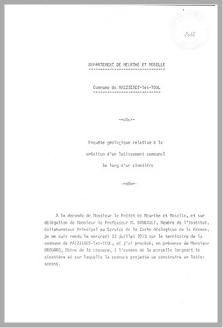 H 1 Commune de Maizières les Toul (Meurthe et Moselle). Enquête géologique relative à la création d'un lotissement communal le long d'un cimetière.