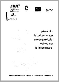 H 1 Présentation de quelques usages en étang piscicole : relations avec le milieu naturel.