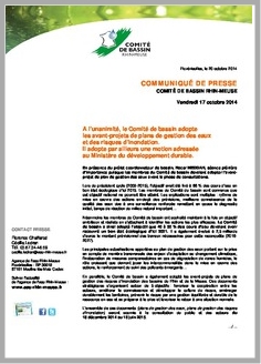 H 1 Communiqué de presse - Comité de Bassin Rhin-Meuse - A l’unanimité, le Comité de bassin adopte les avant projets de plans de gestion des eaux et des risques d’inondation. Il adopte par ailleurs une motion adressée au Ministère du développement durable.