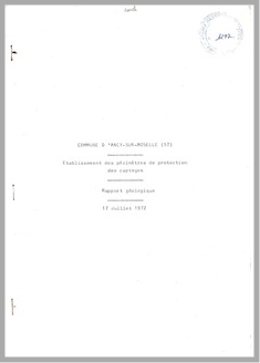 H 1 Etablissement des périmètres de protection des captages commune d'Ancy sur Moselle. Rapport géologique