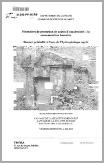 H 1 Périmètres de protection de points d'eau destinés à la consommation humaine. Dossier préalable à l'avis de l'hydrogéologue agréé. Captage de la Gillotte Nord Ouest, captage de la Gillotte Sud Est, Fontaine de la Gillotte SS