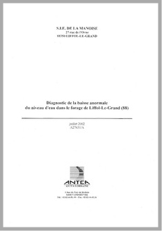 H 1 Syndicat intercommunal des eaux de la Manoise. Diagnostic de la baisse anormale du niveau d'eau dans le forage de Liffol-le-Grand (Vosges)