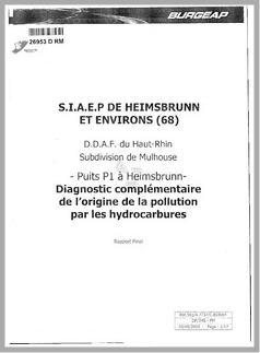 H 1 Puits P1 à Heimsbrunn (Haut-Rhin). Diagnostic complémentaire de l'origine de la pollution par les hydrocarbures