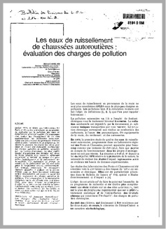 H 1 LES EAUX DE RUISSELLEMENT DE CHAUSSEES AUTOROUTIERES,EVALUATION DES CHARGES DE POLLUTION.