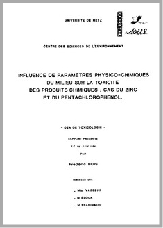 H 1 INFLUENCE DE PARAMETRES PHYSICO CHIMIQUES DU MILIEU SUR LA TOXICITE DES PRODUITS CHIMIQUES,CAS DU ZINC ET DU PENTACHLOROPHENOL.THESE