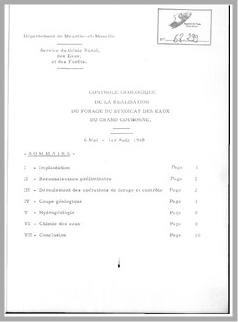 H 1 ETUDE HYDROGEOLOGIQUE REGIONALE. FORAGE D'AGINCOURT. CONTROLE GEOLOGIQUE DE LA REALISATION DU FORAGE DU SYNDICAT DES EAUX DU GRAND COURONNE