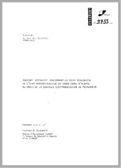 H 1 Rapport définitif concernant le suivi écologique de l'état hydrobiologique du grand canal d'Alsace au droit de la centrale électronucléaire de Fessenheim.