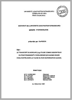 H 1 LE TRANSFERT DU MERCURE (HG) UTILISE COMME DESCRIPTEUR DU FONCTIONNEMENT HYDROLOGIQUE (ECHANGES COURS D'EAU NAPPE) DANS LA PLAINE DU RHIN SUPERIEUR EN ALSACE.