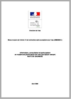H 1 Mise en oeuvre de l'article 14 de la directive cadre européenne sur l'eau (2000/60/DCE). Information, consultation et participation du public en matière de planification de l'eau par bassin versant. Note de cadrage.