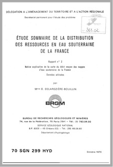 H 1 Etude sommaire de la distribution des ressources en eau souterraine de la France. Rapport N°2. Notice explicative de la carte du débit moyen des nappes d'eau souterraine de la France. Données utilisées.