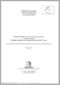 H 1 Etude d'incidence au titre de la Loi sur l'Eau. Forages AEP de Blodelsheim et Rumersheim le Haut (Haut Rhin)