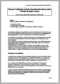 H 1 Note sur l'utilisation exclusive des diatomées dans le cadre d'études de bassin versant.