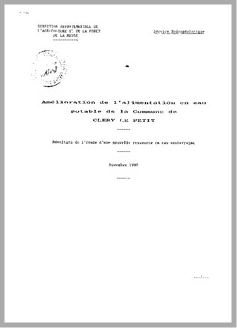 H 1 AMELIORATION DE L'ALIMENTATION EN EAU POTABLE DE LA COMMUNE DE CLERY LE PETIT. MEUSE. RESULTATS DE L'ETUDE D'UNE NOUVELLE RESSOURCE EN EAU SOUTERRAINE.