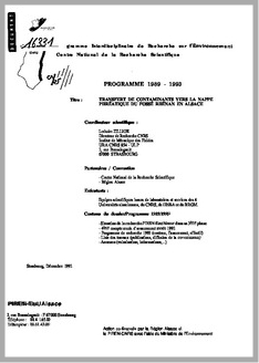 H 1 TRANSFERT DE CONTAMINANTS VERS LA NAPPE PHREATIQUE DU FOSSE RHENAN EN ALSACE.PROGRAMME 1989 /1993.