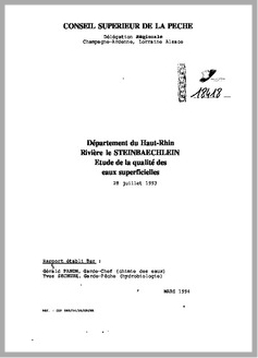 H 1 RIVIERE LE STEINBAECHLEIN (HAUT RHIN).ETUDE DE LA QUALITE DES EAUX SUPERFICIELLES