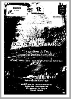 H 1 FORUM DES GESTIONNAIRES. LA GESTION DE L'EAU POUR LES ZONES HUMIDES. ENTRE TERRE ET EAU : AGIR POUR LES ZONES HUMIDES