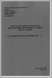 H 1 RECYCLAGE AGRICOLE DES BOUES DES PAPETERIES MATUSSIERE ET FOREST. USINE DE TURCKEIM (HAUT RHIN).ENCADREMENT DU SUIVI AGRONOMIQUE 1997
