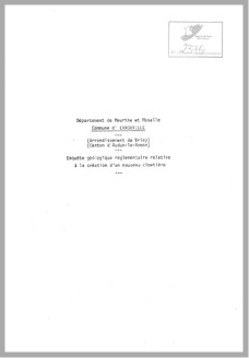 H 1 Commune de Errouville (Meurthe et Moselle) Rapport d'enquête géologique relatif au cimetière communal.