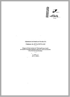 H 1 COMMUNE DE JEZAINVILLE RAPPORT D'INTERVENTION DE L'HYDROGEOLOGUE AGREE EN MATIERE D'HYGIENE PUBLIQUE SUITE A LA CHUTE ACCIDENTELLE D'UN RESERVOIR DE KEROSENE