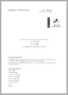 H 1 ETUDE DE LA QUALITE DES EAUX SUPERFICIELLES DE LA MOULAINE (MEURTHE ET MOSELLE) 9 JUIN 1988