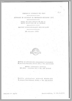 H 1 Captage du Syndicat de Bertrange Guenange (Moselle). Essai de réalimentation de la nappe alluviale de la Moselle. Rapport hydrogéologique préliminaire.