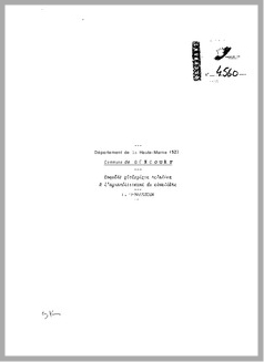 H 1 Enquête géologique relative à l'agrandissement di cimetière. Commune de Goncourt. Haute Marne